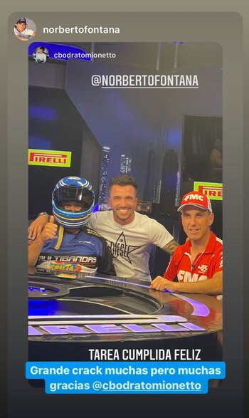 “Hoy al mediodía el amigo y crack de Christian Bodrato Mionetto lo encontró en Buenos Aires. Una locura, me manda un video de una chica en moto en la puerta de un banco y me dice ‘Norber, ¿este casco no es tuyo? Se ve original’. Le contesto ‘Sí sí sí, es mío’ y le conté la historia del robo. Le pido por favor ‘hacé lo posible para recuperarlo’; se bajó, habló con esta gente y lo recuperó. Un grande, este casco significa mucho para mí. Gracias crack”.