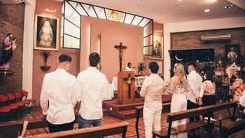 Junto a su esposa Geraldine La Rosa y acompañado por sus cuatro hijos visitaron la Parroquia Natividad del Señor para el bautismo del más pequeño. Marcelo estuvo en uno de los asientos junto a Nahuel, Santino y Matías observando atentamente como Benjamín recibió uno de los sacramente de la iglesia católica. En la vestimenta de toda la familia predominó el color blanco y observó como el reverendo Padre Ignatius Peries Kurukulasuriya avanzó con la emotiva ceremonia.