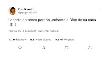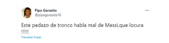 Gorosito tiene 69,4 mil seguidores y, si bien no es un usuario muy activo, en algunas ocasiones en las que se dispuso a escribir algo hizo arder la red social. No es la primera vez que defiende a Messi ya, que por ejemplo, seis días más tarde de la histórica consagración de la selección argentina en la Copa América tras vencer 1-0 a Brasil en el Estadio Maracaná, Pipo fue con los tapones de punta contra los detractores del capitán del equipo nacional y bancó a Lionel Scaloni y sus ayudantes. “Mis más sinceras felicitaciones al cuerpo técnico de la selección argentina”, fue el primero de sus mensajes. “Hoy escuché que esta era la mejor versión de Messi porque ‘canta el himno, discute con el arbitro y se tiró a los pies’. Son muy cómicos ¡País generoso!” Por último disparó: “Messi, ahora que saliste campeón, capaz que jugás mejor que antes ¡Jajajaja! Es imposible jugar mejor que vos”.