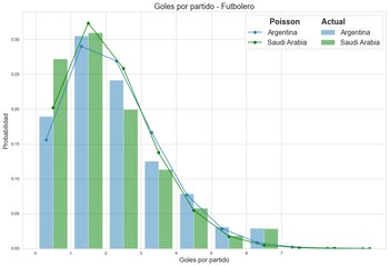 Dicha base es procesada para luego, con una distribución de Poisson, predecir las probabilidades que tiene un equipo de convertir en una determinada cantidad de tiempo, en este caso, 90 minutos.