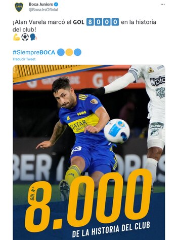 Además de la importancia de anotar el gol del triunfo que le brindó la ansiada clasificación y de ser el primero de su carrera en primera, Alan Varela entró en la historia por haber convertido el gol 8.000 de la institución. Así lo confirmó el club de la Ribera en sus cuentas de las redes sociales. Antes de convertirlo, el futbolista de 20 años había avisado con tres remates potentes que por poco no fueron goles.