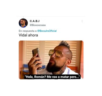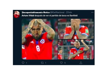 Los memes también tuvieron como gran protagonista al chileno Arturo Vidal, quien habría tomado la decisión de marcharse del Inter de Italia para regresar a Sudamérica y Boca Juniors sería uno de sus posibles destinos (el otro interesado en sus servicios es Flamengo de Brasil). La mayoría apuntó a que el emblema de la Roja cambiaría de decisión tras ver la actuación del cuadro argentino ante el Taladro.