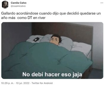 El resultado no pasó desapercibido en las redes sociales, donde uno de los focos estuvo puesto en Marcelo Gallardo, gran protagonista en la noche que se vivió en el Antonio Vespucio Liberti. Algunos le achacaron el nivel del equipo en lo que va del semestre, mientras que otros se burlaron de su cruce con el árbitro Nicolás Lamolina, quien le mostró la tarjeta roja luego de que fuera insultado.