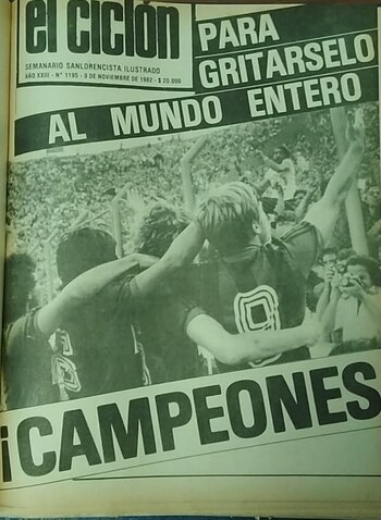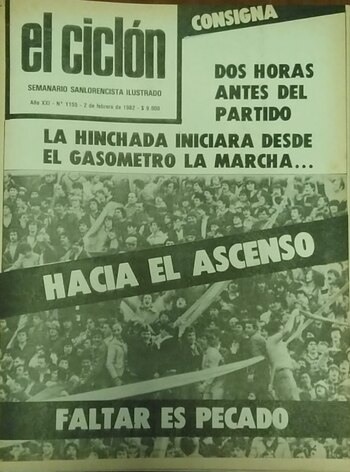 Damián Saiz es un apasionado de San Lorenzo. Posee una gran cantidad de material invalorable, como la colección completa de El Ciclón, revista partidaria que acompañó la vida de la institución durante décadas. Desde muy chico, junto con su padre Manuel, siguió al equipo a casi todas las canchas. En 1982, con apenas 9 años, dijo presente en 39 de los 42 cotejos: “Hay una frase que dice que a San Lorenzo lo salvó la gente y es cierta, porque no se sabe que hubiese pasado con la institución en ese momento. Para comprender lo que fue ese fenómeno social único e irrepetible hay que tener en cuenta dos factores fundamentales: Primero que era un club que llegó a tener 50 actividades deportivas en su sede de Avenida La Plata y que en menos de dos años perdió su estadio y ese predio. Y segundo, en el plano deportivo, al ser un grande estaba acostumbrado a salir campeón y se fue al descenso. Todo eso configuró un mazazo brutal para cualquier hincha. Por eso, desde el inicio del torneo de la B, se volcó tan masivamente al apoyo, porque necesitaba un motivo para demostrar su pertenencia. Una respuesta de lo que le pasó al club y los momentos que se vivían en el país. Cada partido era una fiesta de colores, con mucha familia y con el dato que, en pocos días, se habían acabado las camisetas de San Lorenzo en las casas de deportes de la capital. En lo deportivo lo recuerdo como un buen cuadro, pero sin grandes estrellas. Aprovechó bien el hecho de poder sacar a los equipos más chicos de sus canchas, porque cuando debió ser visitante de verdad (Colón – Banfield – Gimnasia – Atlanta – Lanús) no pudo ganar. En el aspecto personal, lo que más me conmovió fue ver el Monumental y la Bombonera llenos por la gente de San Lorenzo”.
