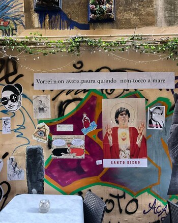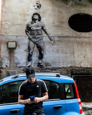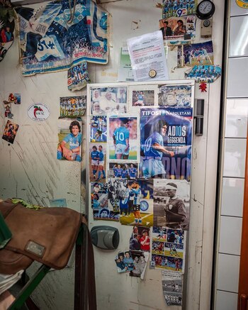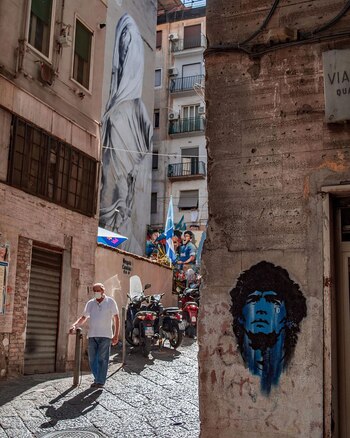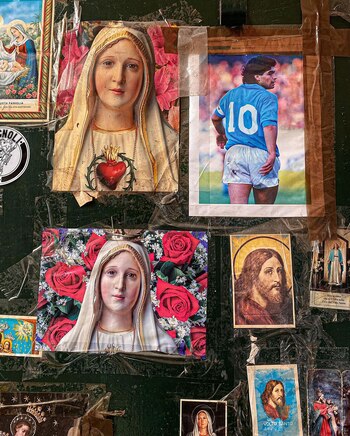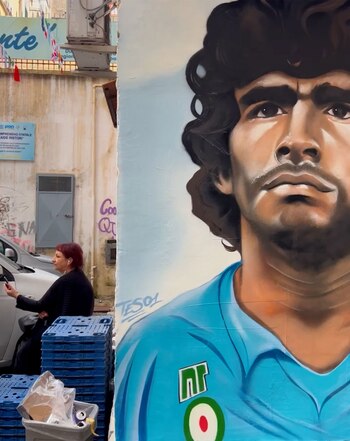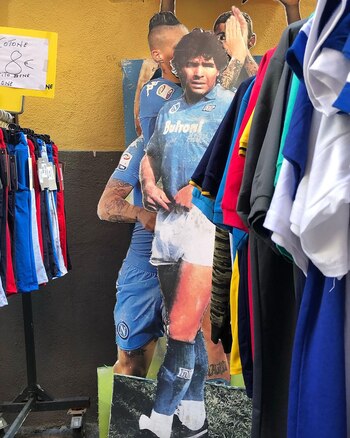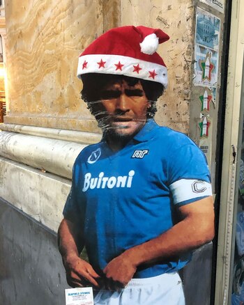 Diego Armando Maradona es una especie de Dios en Nápoles ya que la puso en el mapa del fútbol italiano con sus cinco títulos, en especial sus únicos dos campeonatos en Serie A en 1986/1987 y 1989/1990. Es eterna la adoración por el recordado ídolo argentino y en muchos rincones de la mencionada ciudad del sur de la península sus imágenes recrean al capitán campeón mundial en México 1986.
