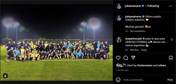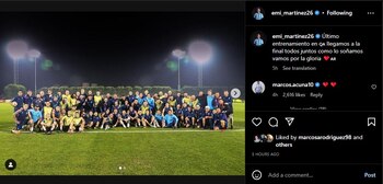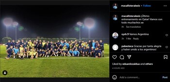 Entre los distintos mensajes, se destacó el del Dibu: “Vamos por la gloria”. “Estoy muy orgulloso de poder ser parte de este grupo”, escribió el Cuti Romero; Nicolás Tagliafico también se sumó: “El apoyo, la unión y la pasión, valores que tenemos que destacar de este grupo” y Gerónimo Rulli le dedicó una frase a los hinchas: “La ilusion de ustedes, es la ilusion nuestra”.