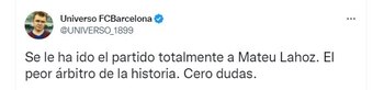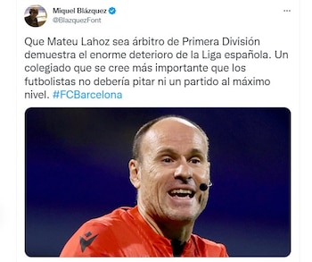 Mateu Lahoz recibió una lluvia de críticas de ambos conjuntos catalanes luego de que exhibiera 15 tarjetas amarillas y 2 rojas en el duelo correspondiente a la Fecha 15 de la liga española disputado en el Camp Nou, que dejó al conjunto dirigido por Xavi Hernández como líder junto al Real Madrid.