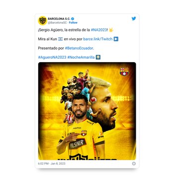 Todas las miradas están puestas en Sergio Kun Agüero después de que el club ecuatoriano Barcelona anunció oficialmente que el ex jugador del Manchester City volverá a jugar un partido de fútbol el próximo 28 de enero.