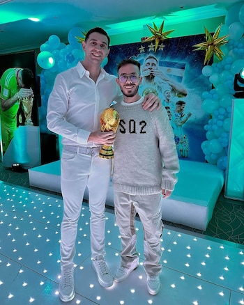 Al ritmo del DJ argentino Fer Palacios, quien estuvo presente y también utilizó su cuenta oficial para publicar algunas imágenes, los invitados saltaron a la pista todos de blanco y se grabaron bailando y disfrutando junto a una réplica de la Copa del Mundo.
