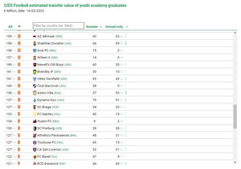 Esta semana el Observatorio De Fútbol (Cies) publicó en su sitio web un extenso listado de clubes según sus categorías inferiores, teniendo en cuenta a más de 50 ligas profesionales de todo el mundo. Para esto, el organismo utilizó el valor de los futbolistas de la actualidad, según el reciente mercado de pases, y elaboró un ranking de las instituciones en donde estos jugadores se formaron como deportistas.