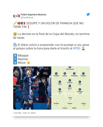 Al no ser la primera vez que los medios franceses son demasiados estrictos al poner la lupa en el rendimiento del ex Barcelona, los usuarios de la red social del pajarito descargaron su bronca y recordaron que La Pulga, pase lo que pase, es campeón del mundo.
