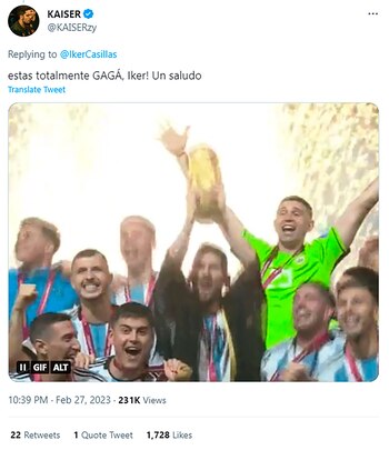 “Tal vez lo entiendas más fácil con una foto”, respondió otro fanático junto a una imagen de Lionel Messi besando la Copa del Mundo que levantó tras consagrarse en el Mundial de Qatar 2022.