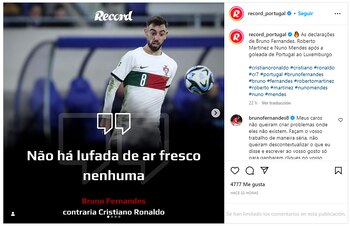 Sus testimonios fueron tomados por varios medios y se volvieron virales. Pero Fernandes quiso poner paños fríos y en el Instagram del diario deportivo Récord indicó que no había que generar polémicas. “Mi gente, no quieran crear problemas donde no los hay. Hagan su trabajo seriamente, no quieran descontextualizar lo que dije y escribir a su gusto solo para obtener clics en su sitio. Todos sabemos que el periodismo portugués está podrido cuando se trata de clubes, pero al menos en la selección tratan de ir por el mismo camino al igual que nosotros en el campo, juntos con mucha alegría y seriedad. Les dejo este comentario para darles aún más atención de la que querían, pero para que hagan mejor su trabajo”.