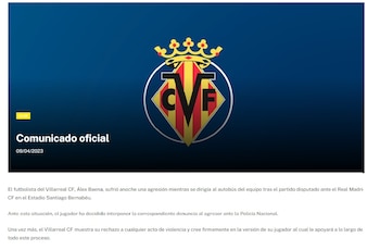 A su vez, desde las instalaciones del Submarino Amarillo confirmaron que no iban a denunciar al Real Madrid y apuntaron que Baena “está afectado tanto por la agresión física como por lo que se dice del supuesto motivo de la agresión verbal, del cual afirmó (como dice en su comunicado) que es falso”.