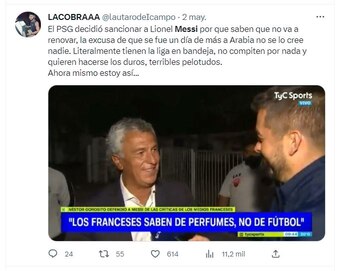 En las redes sociales, los fanáticos de la Pulga apelaron al humor para realizar los tradicionales memes, en referencia a las diversas reacciones que podría tener el astro del fútbol con relación a la sanción que le impusieron las autoridades del combinado galo.
