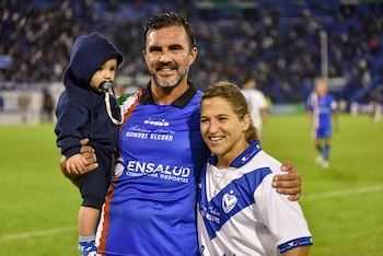 Acompañado de su pareja Mica Viciconte y el hijo que tienen en común (Luca), junto a las otras hijas que el futbolista tuvo con Nicole Neumann (Indiana, Allegra y Sienna), Cubero reunió a varias leyendas de la historia de Vélez. Una de ellas, a pesar de no estar presente en el recinto, fue Carlos Bianchi. El Virrey apareció con un mensaje en la pantalla gigante del estadio y recibió los aplausos de todos los presentes.
