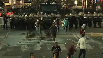 Aproximadamente a las 17 horas, treinta minutos antes de que rodara la pelota en el campo de juego del estadio Monumental por el Superclásico entre River y Boca válido por la Fecha 15 de la Liga Profesional, se produjeron algunos desmanes en las adyacencias de la cancha. Un grupo de hinchas que no tenían entradas para ingresar buscaron saltar vallas y entrar por la fuerza. La Policía tuvo que intervenir y se efectuaron algunas corridas y pedradas que causaron la rotura de un vehículo.