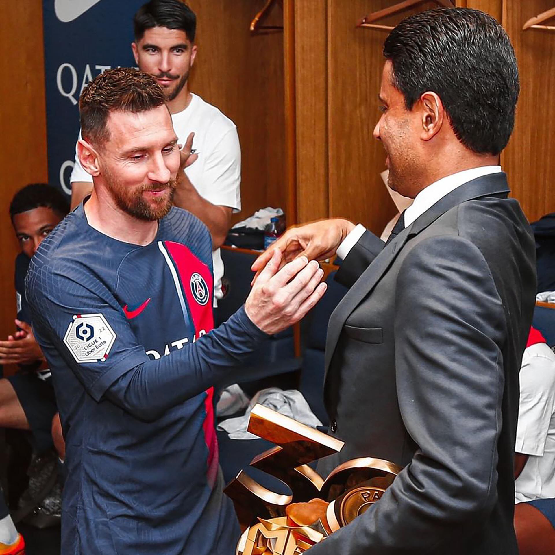 En la cuenta oficial de Instagram del club se pudo ver que el empresario bajó a los vestuarios después de la derrota y le entregó un trofeo personalizado con el número 30 dorado, haciendo referencia al dorsal que utilizó en su camiseta y con el que se vendieron miles de ejemplares durante sus dos años. Sergio Ramos recibió un regalo similar pero en su caso con el 4 que lo caracteriza.