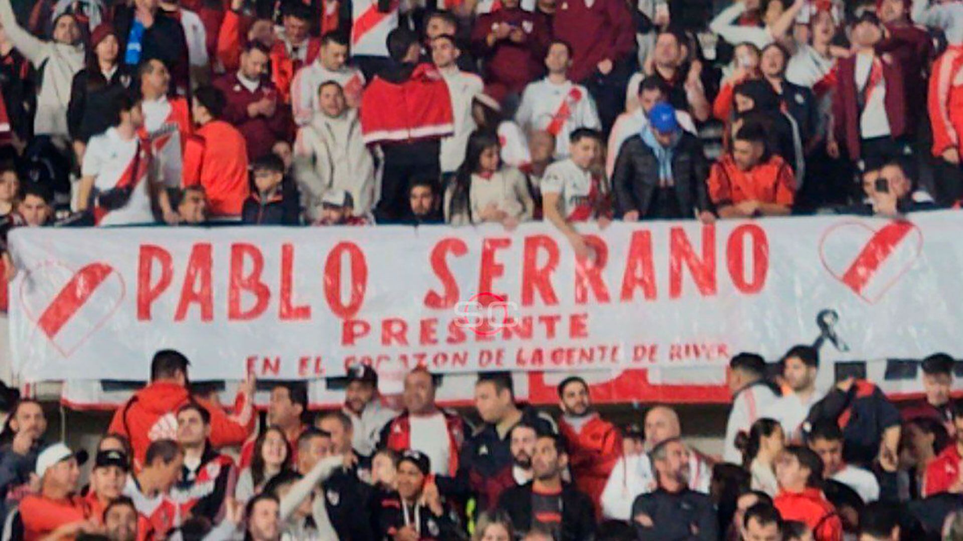 En la misma baranda desde la que cayó apareció colgada una bandera en su memoria con la leyenda “Pablo Serrano, presente en el corazón de la gente de River”. La frase estaba flanqueada con dos corazones con los colores del club. El socio formaba parte de la agrupación “Los Pibes del 20″, con sede en la ciudad bonaerense de Morón. En su entorno lo conocían como “Carucha”.