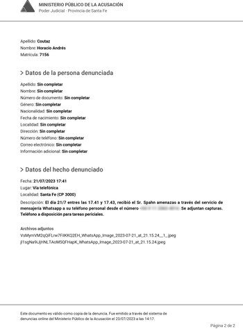 La situación está en etapa de investigación y de entrada en el caso actuó la fiscal María Laura Urquiza, que ya tenía otras causas abiertas contra la dirigencia por amenazas de dos meses atrás, cuando el equipo andaba en el fondo de la tabla y se viralizaron los teléfonos de varios directivos. Claro que en ese caso parecía tratarse sólo de hinchas enojados y esta vez la denuncia tiene otro cariz. Por lo pronto sucedieron dos cosas simultáneamente: primero, el jugador decidió no viajar a Buenos Aires para el partido que se jugó este lunes en Liniers contra Vélez y que terminó en empate, y después se supo que la amenaza provino de un teléfono radicado en la ciudad de Buenos Aires. Por ahora la línea investigativa va sobre el entorno del futbolista y quién se quedaría sin cobrar la suya si el pase no se realiza, como se dice en la amenaza directa que recibió el presidente de Unión.