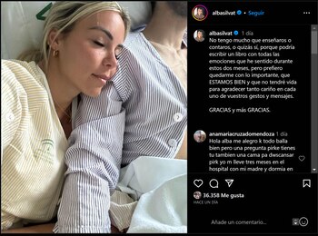 En el posteo también compartió un mensaje de un seguidor mandándole ánimos y fuerzas tanto a ella como a su pareja.