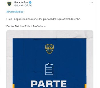 Con el resultado 2-1 en favor del Xeneize, Langoni intentó correr un pelotazo largo frente a la marcación de Nicolás Morgantini, pero de un momento a otro dejó de perseguir el balón con la misma intensidad y dejó de emplear los mismos esfuerzos en la disputa de la pelota. Aunque evitó evidenciar sus molestias antes del pitazo final de Fernando Espinoza, fue evidente que algo había sentido.