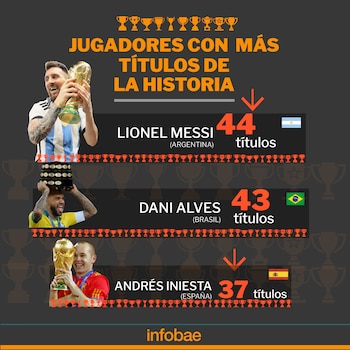 La Pulga es a esta altura el jugador más ganador de todos los tiempos con 44 títulos, uno más que Dani Alves. Obviamente, el más valioso es la Copa del Mundo que consiguió en Qatar en diciembre pasado, pero la lista es larga y también existe cierta controversia.