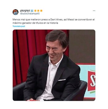 Las bromas estuvieron dirigidas principalmente a Dani Alves porque Leo lo pasó en la tabla de jugadores con más títulos de la historia. El argentino ahora tiene 44 y el brasileño quedó segundo con 43. Además, hubo memes dedicados a Pánicco, el arquero de Nashville por su apellido y al tamaño del trofeo que alzó el equipo de Martino.
