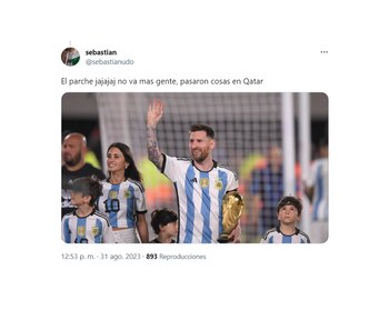 Este detalle hizo que muchos fanáticos argentinos y hasta seguidores de Les Bleus comentaran el tuit en el que se publicó la lista. “El parche jajajaj no va más gente, pasaron cosas en Qatar”, “¿Qué hace el escudo de CAMPEON ahí? ¿O es un escudo de SUB-Campeón?”, “Algo sobra en esta foto”, “Fíjense que les quedó vieja la foto, el parchecito en el pecho lo pueden ir sacando” y “Lo siento, pero esa insignia ya no te pertenece”, fueron algunas de las frases que estuvieron acompañadas por imágenes con signos de interrogación, círculos en referencia al parche e imágenes de Messi con la Copa del Mundo para burlarse por esta particularidad.
