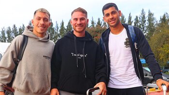 Juan Foyth y Nahuel Molina también posaron ante las cámaras tras arribar a Buenos Aires. También llegó Gonzalo Montiel, el autor del gol que le dio el título del mundo a la Argentina.