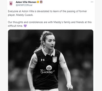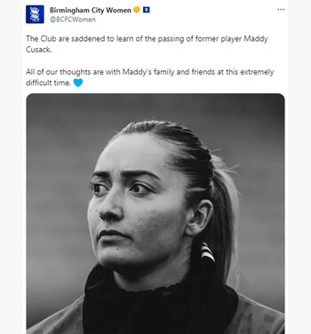 Su actual club fue el que dio a conocer lo sucedido por intermedio de un comunicado en sus redes sociales: “El Sheffield United Football Club está devastado al informar la triste noticia del fallecimiento de Maddy Cusack. El Club y la familia de Maddy agradecerían un período de privacidad y no harán más comentarios en este triste momento”. El periódico The Guardian advirtió que “la causa de la muerte no ha sido revelada” hasta el momento.