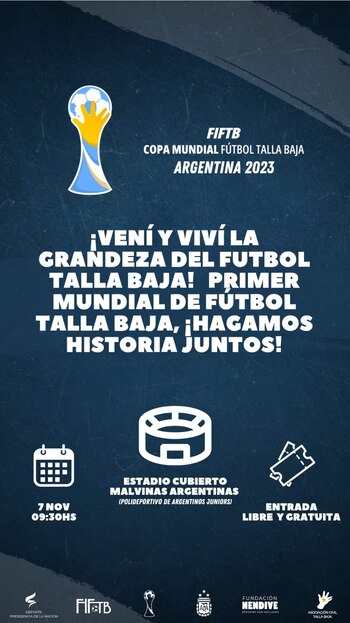 Desde el 7 al 12 de noviembre se celebrará en Argentina el Mundial Talla Baja de fútbol masculino y la Albiceleste asoma como uno de los candidatos. Ya se realizó el sorteo y el conjunto nacional compartirá el Grupo 1 junto con México, Ecuador y Chile. Toda la competición se llevará a cabo en el estadio cubierto Malvinas Argentinas de Capital Federal y la entrada será libre y gratuita para todo el mundo.