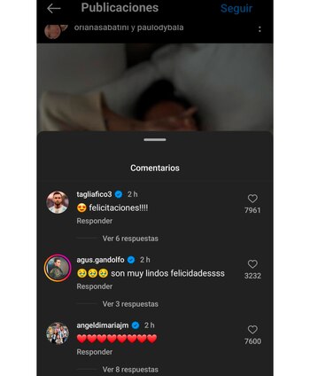 A esa publicación reaccionaron varios jugadores de la Scaloneta. Ángel Di María comentó con emojis de corazones, Nicolás Tagliafico escribió “felicitaciones” y Joaquín Correa también se sumó: “Pero claro, loquitos”. Además, hubo likes de Antonela Roccuzzo, Matías Soulé, Rodrigo De Paul, Nicolás Paz, Leandro Paredes y Walter Benítez, entre otros.