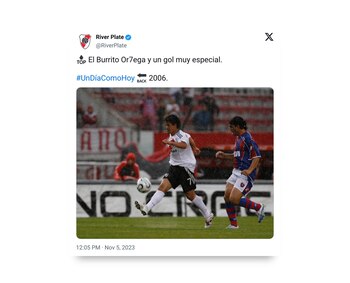 River Plate, por su parte, esperó hasta este domingo para lanzar un dardo con sutileza, aprovechando una efeméride. “El Burrito Or7ega y un gol muy especial. #UnDíaComoHoy 2006″, apareció escrito en la cuenta de la red social X del Millonario. El 7 era el número de casaca del jujeño en aquel golazo de vaselina ante San Lorenzo, en el 5-0 en el Monumental. Y el 7 fue el número que persiguió a su clásico adversario en esta aventura en la Libertadores que quedó trunca.