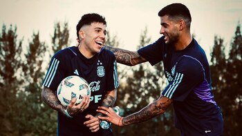 Uno de los encuentros esperados era justamente el del zaguero con Enzo Fernández. Es que el el central del Tottenham había visto la tarjeta roja en la Premier League una fuerte infracción ante el mediocampista de Chelsea y ambos se reencontraron esta semana en Ezeiza. Obviamente, confirmaron que la amistad continúa intacta: “Preparados para lo que viene. Siempre así”, escribió el ex River Plate en su cuenta de Instagram con una serie de fotografías, una de ellas junto a Romero, quien lo lo toma del cuello.