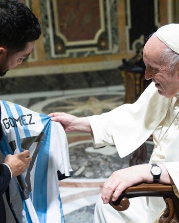 En el carrete de imágenes, Gómez eligió como portada la celebración en el centro del campo de juego del estadio Lusail, con la ropa de juego y la medalla colgada apretando su puño en compañía de su esposa, Linda Raff, y sus tres hijos, todos con la camiseta suplente de la Selección. Otra de las imágenes muestra al Papu pasando por al lado de la Copa del Mundo en la zona de premiación tras la final contra Francia, una en el vestuario, solo, besando el trofeo y una en la que se ve al Papa Francisco recibiendo la camiseta albiceleste con el apellido del jugador.