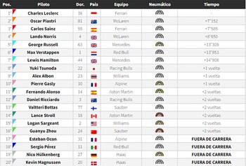 Fue una partida de ajedrez entre Leclerc, Piastri, Sainz y Norris, ya que fueron administrando el consumo del caucho. Cuando el puntero aceleró, lo propio hizo el australiano y caso contrario cuando bajó su ritmo. En el giro 39 desde los boxes le dijeron a Leclerc “puedes ir más lento si quieres”, en una clara referencia para cuidar más las gomas.
