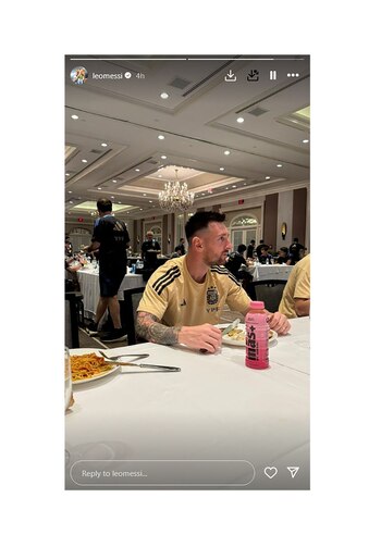 Minutos más tarde, una vez definido que Colombia superó a Uruguay por 1 a 0 en Bank of America Stadium de Charlotte (Carolina del Norte) y será el contrincante en la final de la Copa América, Lionel Messi subió una historia con su retocada cabellera. En la imagen se lo puede observar al ex Barcelona de España y Paris Saint-Germain de Francia cenando junto al resto de sus compañeros y disfrutando de la nueva bebida que lanzó al mercado.