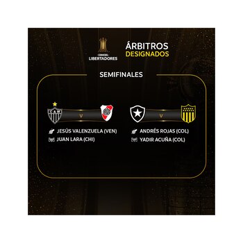 La Conmebol anunció los árbitros designados para las semifinales de ida tanto de la Copa Libertadores como de la Copa Sudamericana. El venezolano Jesús Valenzuela será el encargado de impartir justicia en el primer duelo entre Atlético Mineiro y River Plate, que se disputará el martes 22 de octubre en el Arena MRV de Belo Horizonte.