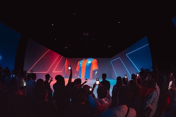 El evento de lanzamiento azulgrana fue diseñado como una experiencia inmersiva y sensorial, y tuvo lugar en un espacio especialmente ambientado por la marca para el club.