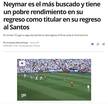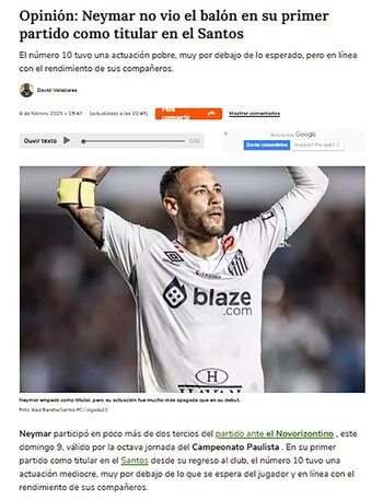 El análisis más duro llegó de la mano de UOL Esporte, que publicó: “Neymar falló todos sus regates ante el Novorizontino”. El medio destacó la falta de gravitación del delantero en los dos encuentros que ha disputado en su regreso al equipo paulista, ambos terminados en empate.