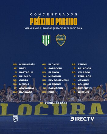 La lista de concentrados publicada indica que no estarán presentes el viernes: Chiquito Romero, Figal, Lema, Rojo, Fabra, Belmonte, Ander Herrera, Agustín Martegani y Cavani. De esta manera, Gago deberá armar un rompecabezas pensando en el cotejo de este viernes contra el Taladro en el que sus dirigidos no solamente intentarán mantenerse en la senda victoriosa sino también levantar su producción ya que contra Independiente Rivadavia el volumen de juego estuvo muy por debajo de la media.