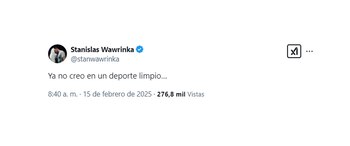 El experimentado Stanislas Wawrinka también fue contundente y conciso con una frase en X: “Ya no creo en un deporte limpio”. El suizo de 39 años se alineó a Kyrgios y entendió que la AMA le otorgó facilidades a Sinner para manejarse en el último año de competencia, retener los títulos y además recibir una sanción mucho menor a la que se había especulado. La frase de Stan Wawrinka tuvo miles de likes y cientos de comentarios y retuits en cuestión de minutos.