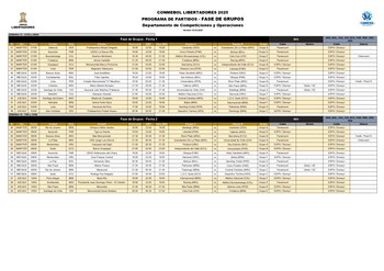 Luego de que los equipos conocieran a sus rivales en el sorteo que se llevó adelante en la sede de Conmebol, en Luque, quedaron definidos los ocho grupos de la próxima fase de la Copa Libertadores. Y hace unos instantes, la entidad continental informó a través de sus cuentas oficiales de las redes sociales cómo será el calendario para los aspirantes que buscarán la gloria que alcanzó el Botafogo el año pasado.