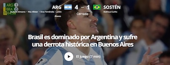En cambio, en otra nota aparte, el medio hizo foco en los primeros 45 minutos del clásico: “Brasil tiene el ‘peor primer tiempo de su historia’ en Eliminatorias ante Argentina”. Cabe destacar que la Albiceleste logró abrir el marcador rápidamente con el tanto de Julián Álvarez, mientras que un par de minutos después amplió el resultado con un golazo de Enzo Fernández. Más allá de que Matheus Cunha haya recortado distancias tras aprovechar un error de Cristian Cuti Romero, Alexis Mac Allister volvió a convertir a favor de los locales para consumar un histórico primer tiempo. Luego, Giuliano Simeone cerró la goleada en el complemento con un emotivo festejo.