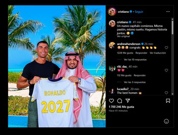 El propio club, a través de sus canales oficiales, puso fin a las dudas con un video y una declaración breve y contundente del portugués: “Al Nassr forever!”. Junto a esa frase, Ronaldo compartió una imagen con la camiseta auriazul y otro mensaje dirigido a los aficionados: “Comienza un nuevo capítulo. Misma pasión, mismo sueño. Hagamos historia juntos”. Así, se concretó la renovación que suponía, según fuentes internas, “un secreto a voces” tras la ausencia del jugador en el último Mundial de Clubes.