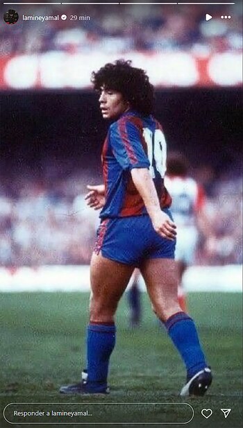 Yamal posteó una historia en su perfil con una foto antigua de Maradona en medio de un partido durante su etapa en el Barcelona, que se prolongó de 1982 a 1984 y ganó tres títulos (Copa del Rey, la Copa de la Liga y la Supercopa de España de 1983) hasta su partida al Napoli de Italia. Un gesto especial en homenaje a uno de los máximos exponentes del deporte mundial que llegó a ser dirigido por César Luis Menotti en la entidad de Cataluña.