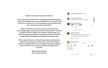 La familia ha agradecido el apoyo global y solicitó que se eviten rumores: “Agradecemos el abrumador apoyo y la amabilidad mostrados por los fans, amigos y toda la comunidad. Por favor, sigan manteniendo a Ronnie en sus pensamientos y oraciones. Las actualización se compartirán a medida que estén disponibles a través de los canales oficiales”. Además, reiteraron la importancia de informarse únicamente a través de fuentes oficiales: “Por favor, confíen únicamente en las actualizaciones oficiales de la familia de Ronnie o de sus representantes autorizados. Nos comprometemos a mantenerlos informados según corresponda. Ronnie siempre ha inspirado al mundo con su fortaleza y corazón, y sabemos que siente el amor y la energía que le envían”.