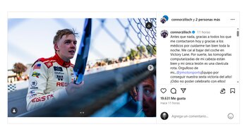 La noticia de la caída generó preocupación inmediata en el paddock y en las redes sociales. Zilisch utilizó sus cuentas oficiales para tranquilizar a sus seguidores. “Gracias a todos por comunicarse hoy. Salí del hospital y ya estoy mejorando. Afortunadamente, las tomografías computarizadas de mi cabeza están bien, solo tengo una clavícula rota. Agradecido con todos los médicos por la rápida atención y agradecido de que no haya sido peor”, publicó el piloto.