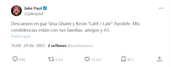 Posteriormente, el youtuber amplió su mensaje al conocer la identidad de las víctimas: “Descansen en paz Sina Ghami y Kevin ‘Latif / Latz’ Ayodele. Mis condolencias están con sus familias, amigos y AJ”. Según información publicada por Punch, los fallecidos eran dos amigos cercanos de Anthony Joshua y miembros de su equipo de trabajo. Sina Ghami se desempeñaba como preparador físico del boxeador británico, mientras que Latif Ayodele, conocido como Latz, era su entrenador personal, ambos presentes durante la reciente pelea entre Joshua y Paul.